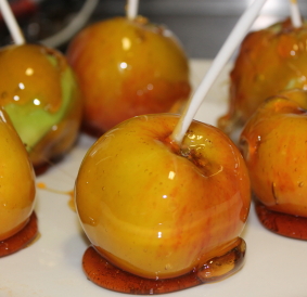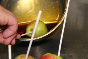 Put the sticks in the apples and dip in the toffee and leave to cool and set.