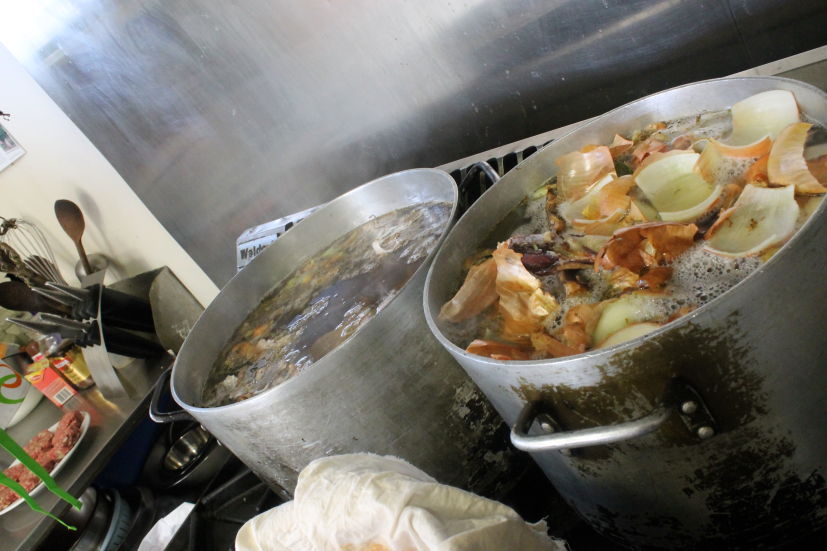the bones simmering to make a delicious demi glaze to use as a base for sauces and gravies