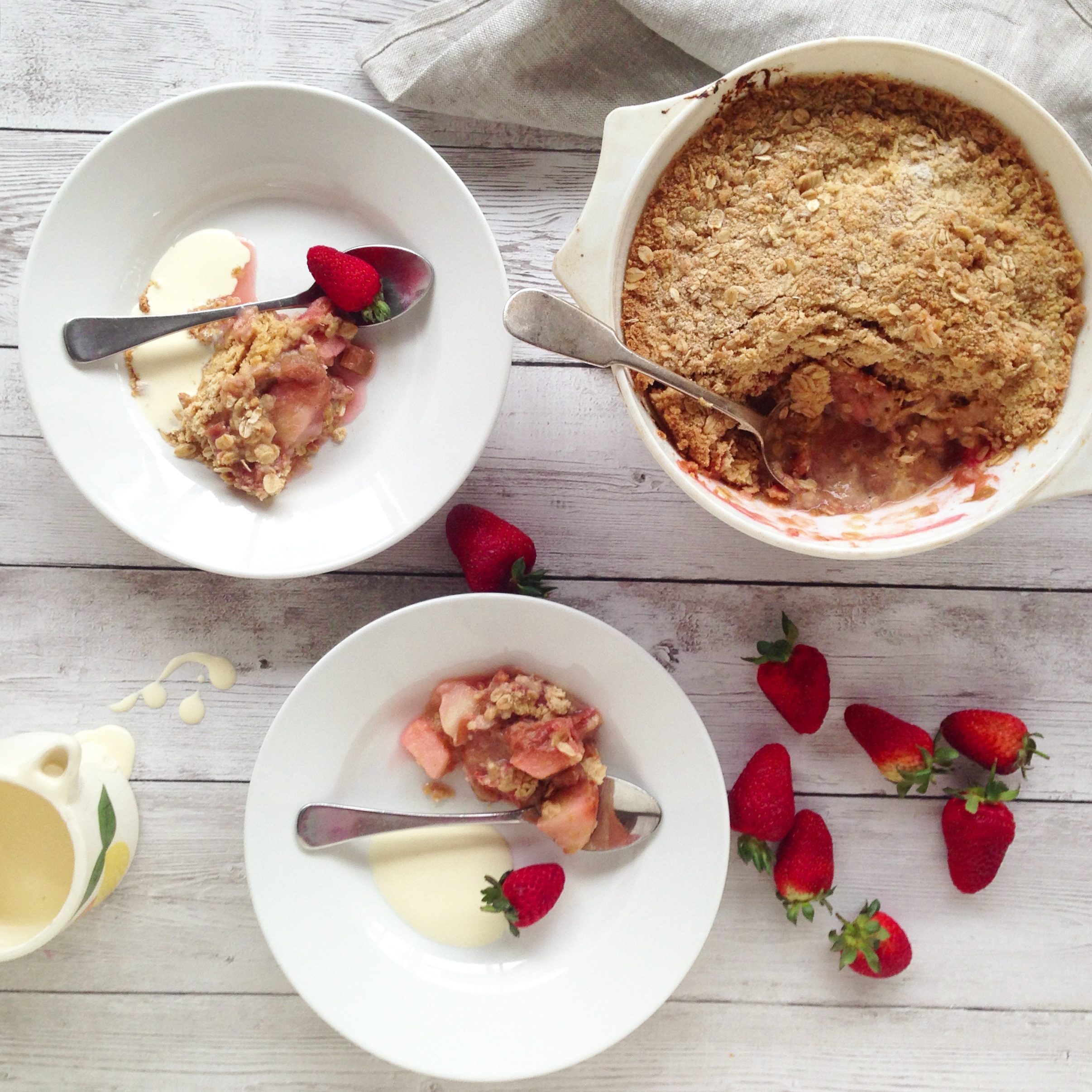I mixed about 300 grams with 4 stewed pears to make a pear and rhubarb crumble, using the apple crumble recipe from my book, The Real Food for kids cookbook.