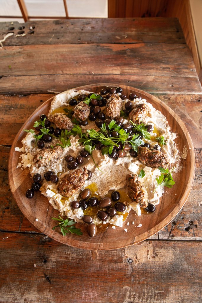 Lamb Kofta (recipe Packed) pantry hummus (recipe Tas Pantry 2) my fermented olives
