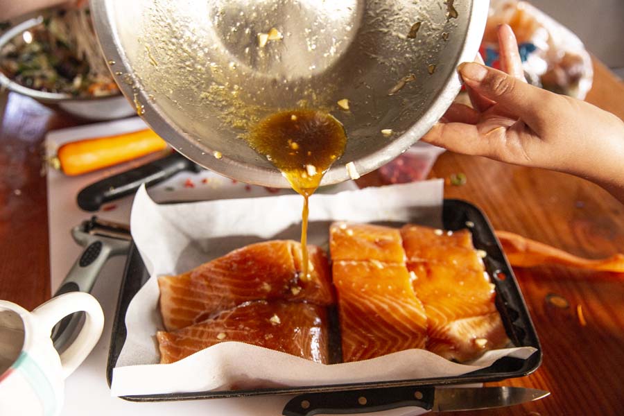 The kids this week had a good chance to work on the knife skills. Make a salad dressing. Marinade and bake the salmon.