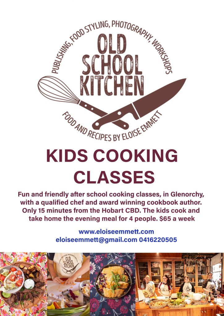 Last night at our Old School Kitchen Kids cooking class we made Mango Chicken, rice and green fritters made with coriander, spring onion, silverbeet and zucchini. It was a fun evening unfortunately no photos of the cooking action this week we were too busy. Some weeks the kids cook there own meal, others weeks we split up the tasks and cook the meal together and then divide it up at the end. Last night we split up the jobs. Chopping the onions and garlic for the base for the curry , measuring the spices and dry roasting them. We boned whole chickens and chatted about making stocks. Washed the rice to cook . Made and fried the fritters. The dinner was absolutely delicious my entire family loves, this recipe is in Packed cookbook. My steph was a bit choosy with her food when she was young and one time when took her to a Indian restaurant I encouraged her to try aMango Chicken rather than just eating the pile of Nann Bread she would often do and she loved it so I had to Make a good recipe for it I could make at home!! While I do try to use Tasssie food no one can resist the occasional tropical mango , we used frozen last night.