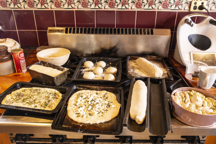 Sourdough at all the different stages. Sourdough takes a few days so fed the starter , started a preferment, made a dough from a preferment I had prepared and baked a loaf I had ready from the day before.