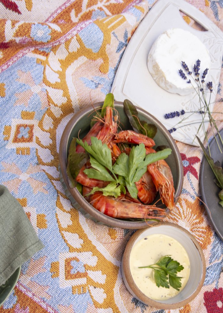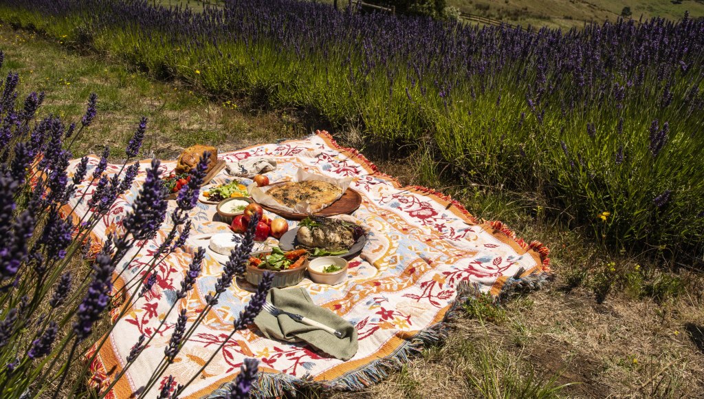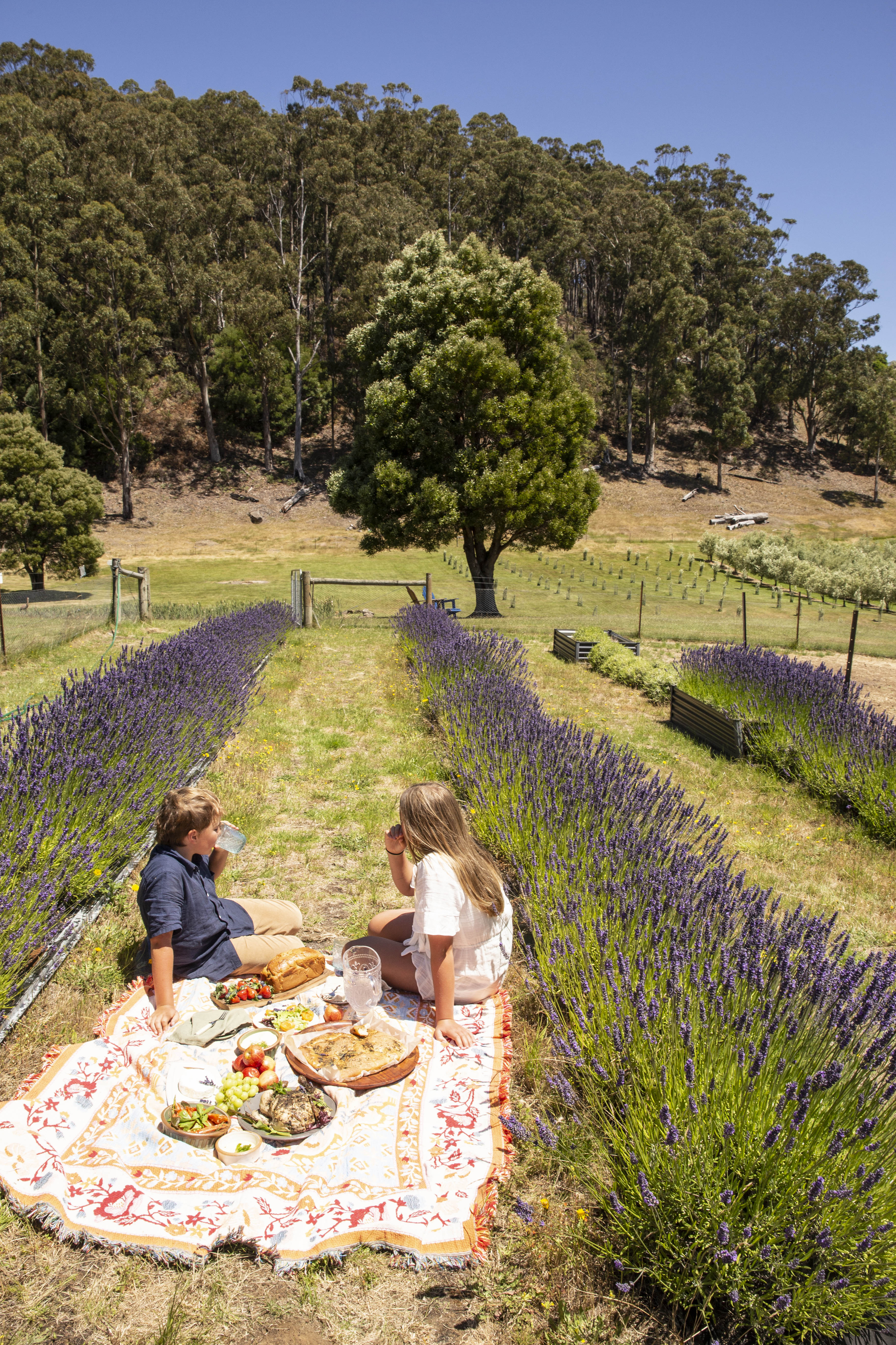 The kids and I took a trip to Campo De Flori last week to catch up with Lisa to organise our Cooking with lavender workshop and collect some fresh cut lavender for our cooking. If you have been to one of my workshops you will know about Lisa, she has made a lot of the gorgeous ceramics that we use to serve food and drinks in the cooking school. I prepared a picnic for the visit knowing that the gorgeous lavender would be looking stunning in bloom.