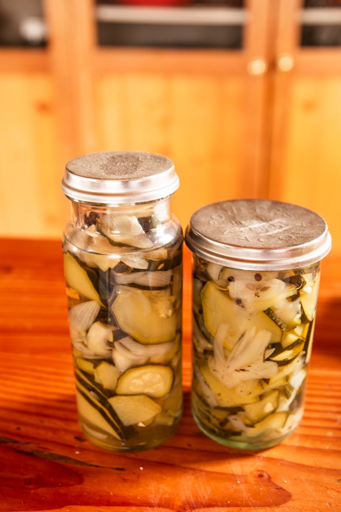 Slice zucchini into a 5 ml slice. Peel and slice brown onion into a 5 ml slice. Use about 2 tablespoons of salt per kilo of veg and salt the veg leave to stand in a strainer over a container or sink for at least 2 hours (to remove some moisture).